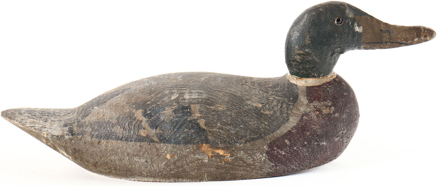 Mallard Drake by Benz Decoy Co., Jefferson City, MO, glass eyes, solid wood, original paint, structurally excellent. Grade: Very Good ++ - Value: 30 to 60