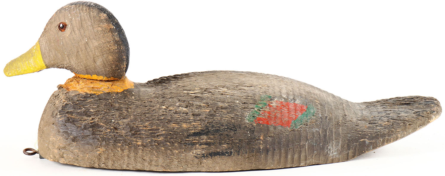 Mallard Hen by MS factory, glass eyes, one eye is missing, original paint with paint added, head is loose. Grade: Very Good + - Value: 10 to 20