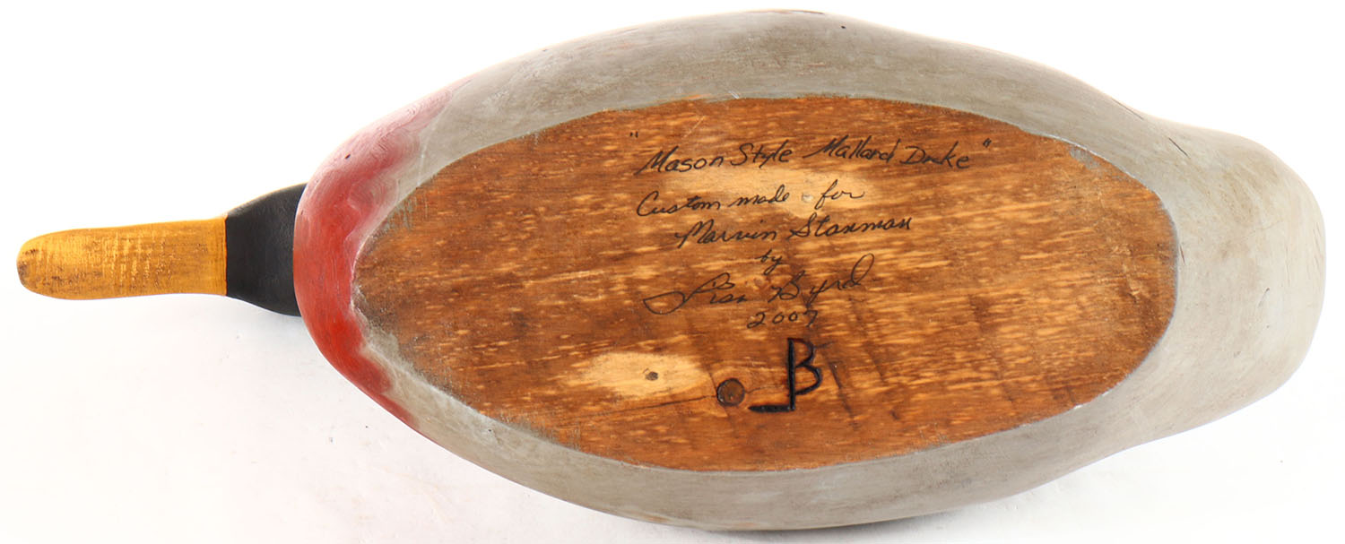 Mallard Drake by Lisa Byrd, glass eyes, solid wood, original paint, structurally excellent, signed on bottom by LISA BYRD. Grade: Excellent - Value: 20 to 40