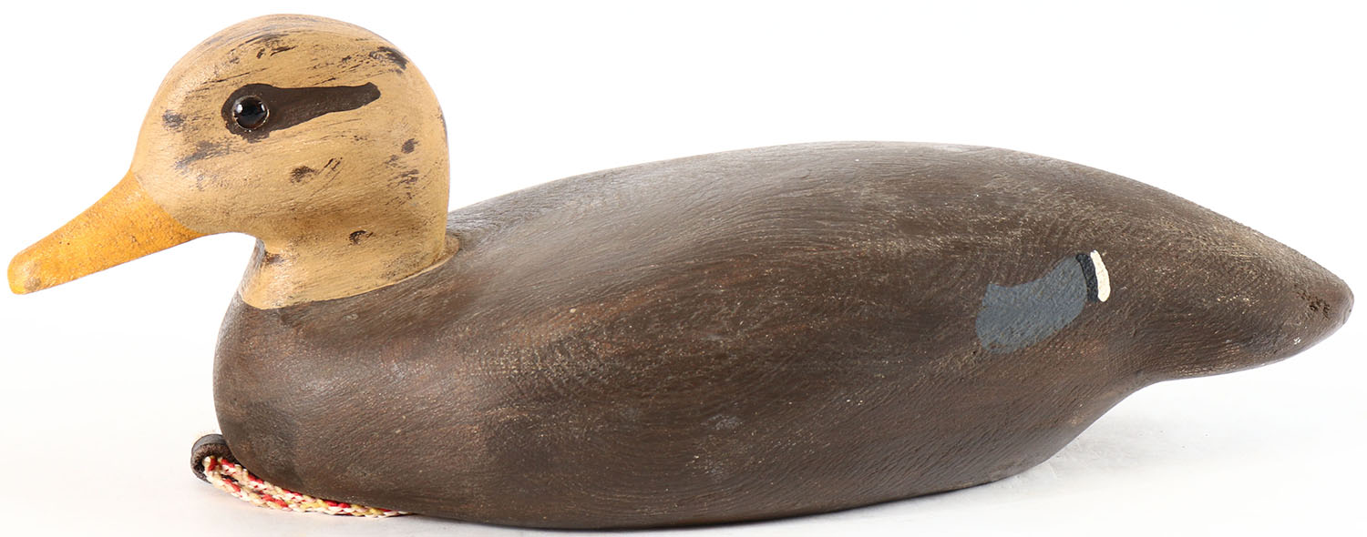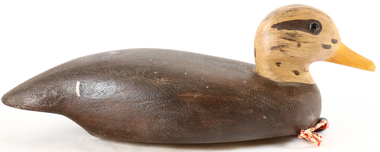 Mallard Hen by unknown maker, glass eyes, solid wood, original paint, structurally excellent. Grade: Excellent - Value: 10 to 20