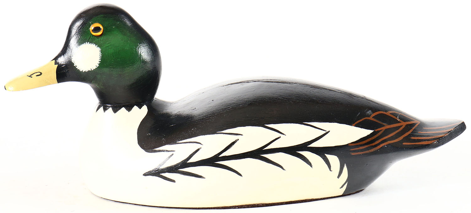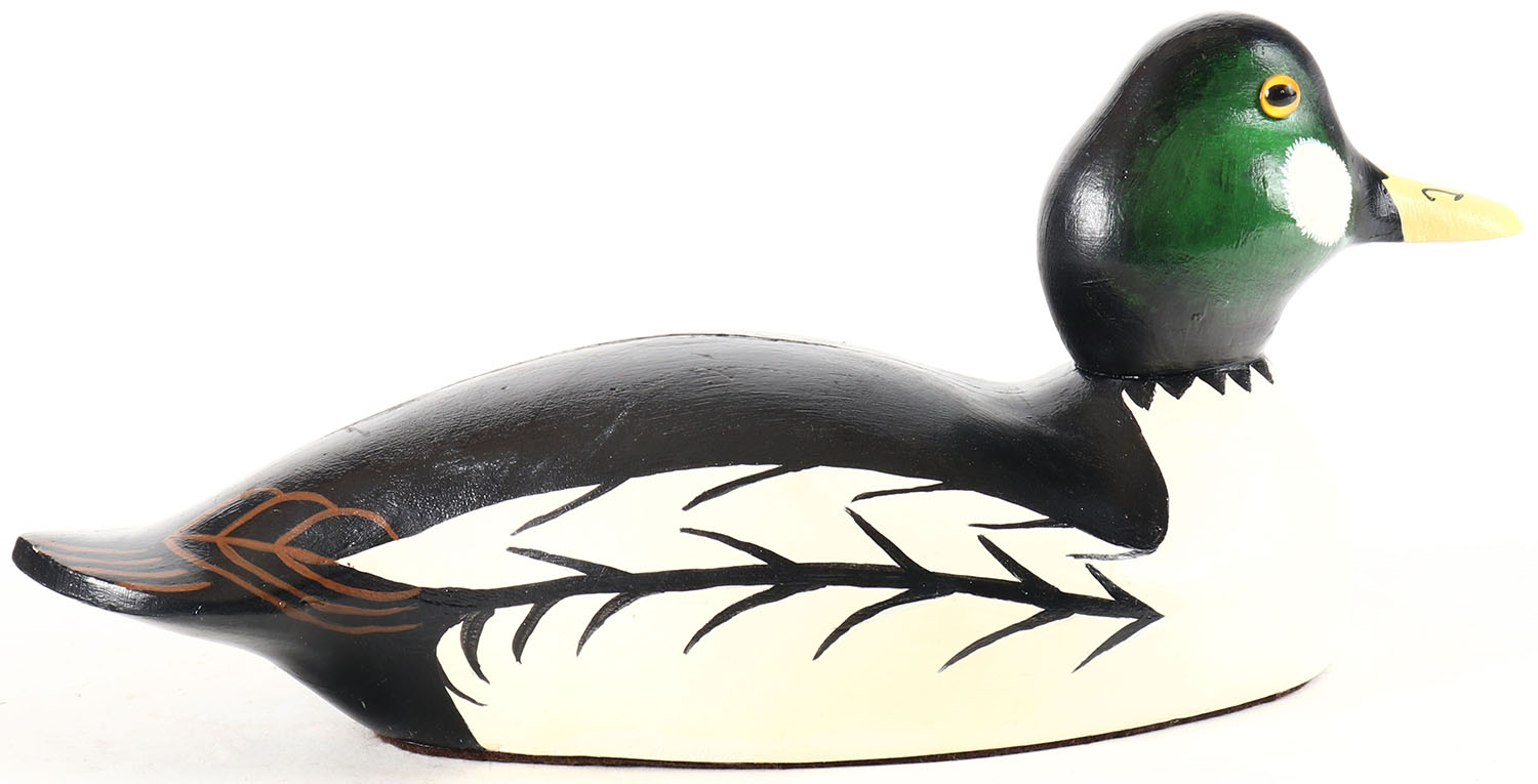 Goldeneye Drake by unknown maker, glass eyes, solid wood, original paint, structurally excellent. Grade: MINT - Value: 16 to 30