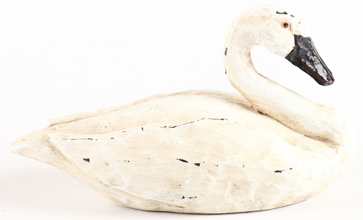 Miniature Swan by unknown maker, painted eyes, solid wood, original paint, structurally excellent. Grade: Very Good ++ - Value: 2 to 60