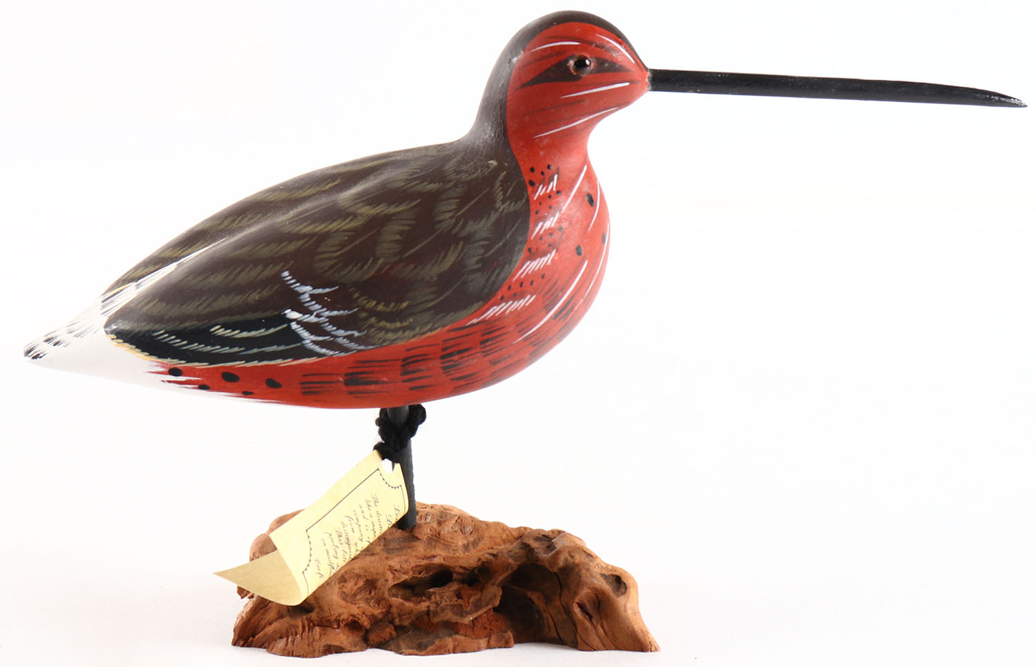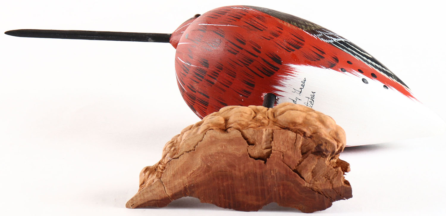 Dowitcher by Ed & Judy Greer, glass eyes, solid wood, original paint, structurally excellent, signed on bottom by ED & JUDY GREER. Grade: MINT - Value: 10 to 60