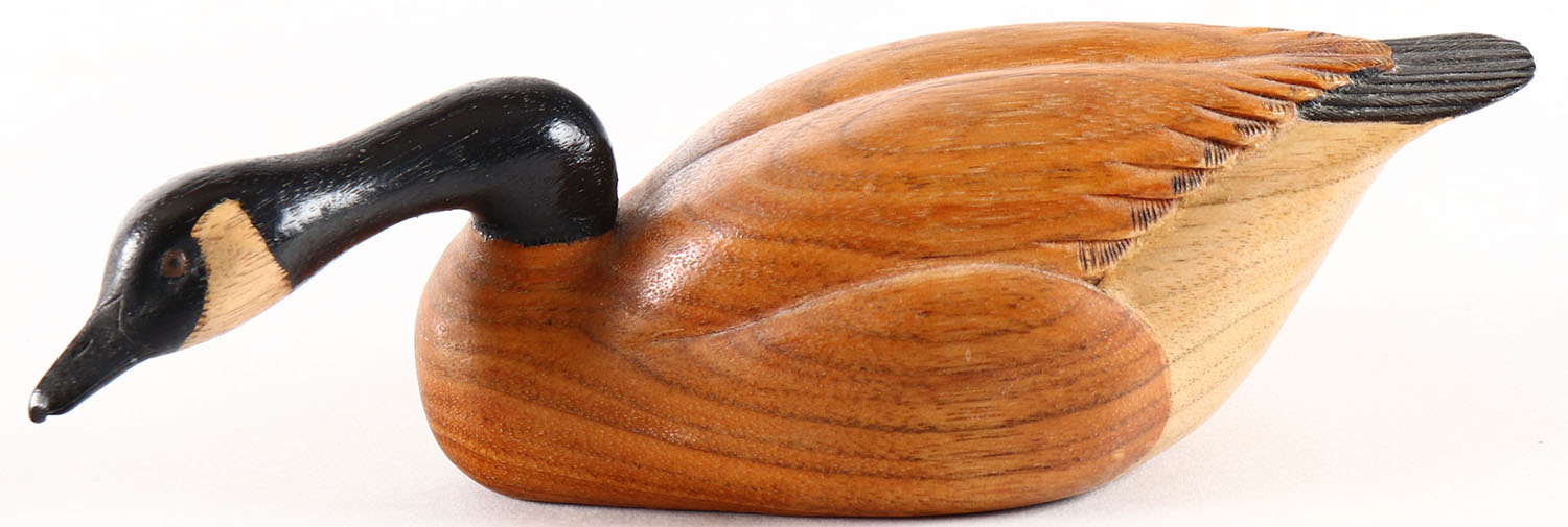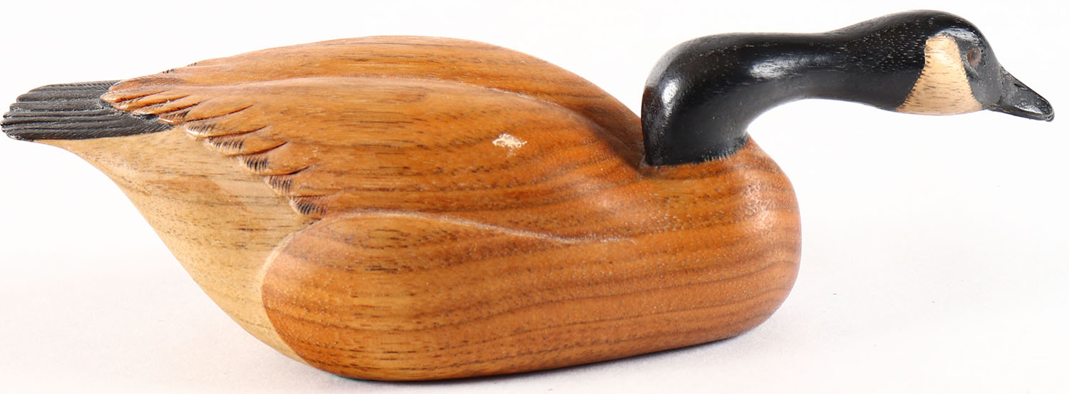 Small Canada Goose by unknown maker, tack eyes, solid wood, original paint, structurally excellent. Grade: Excellent - Value: 6 to 30