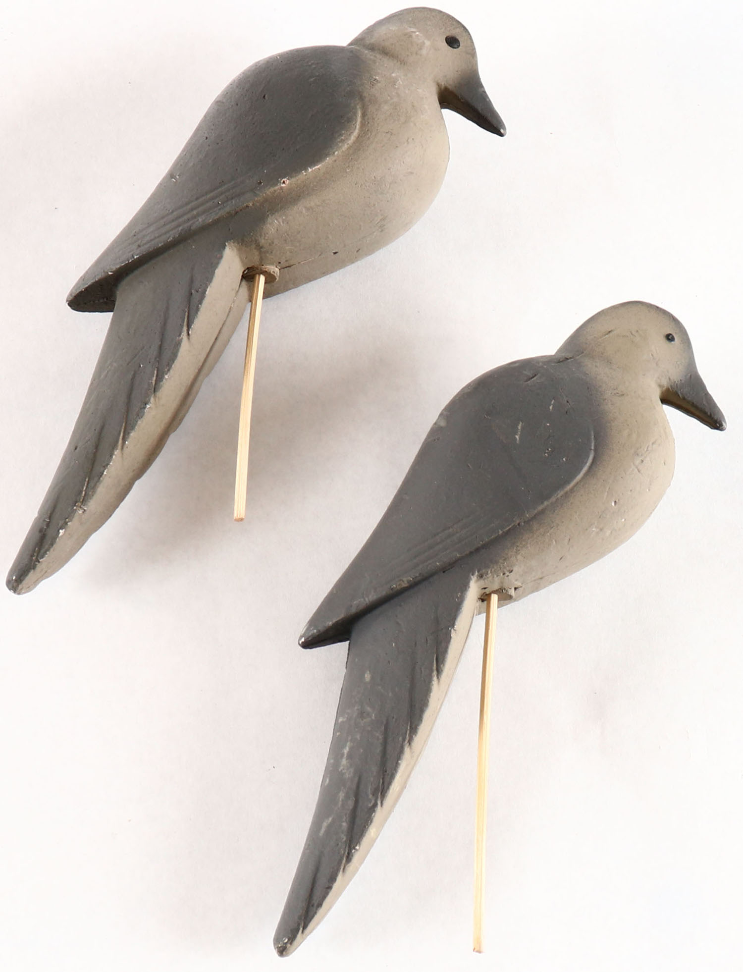 Lot of 2 Doves by unknown maker, painted eyes, paper mache', structurally excellent. Grade: Very Good ++ - Value: 6 to 30