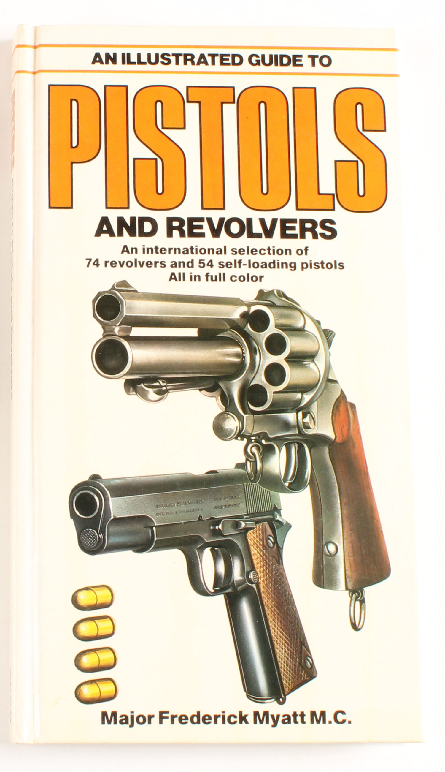 An Illustrated Guide To Pistols and Revolvers by Major Frederick Myatt M.C. 1981, 4 1/2'' x 8 1/2''. 159 pages, pages clean, binding tight, hardcover excellent, b/w and colored images. Value: $360 Grade: Excellent - Value: 5 to 350