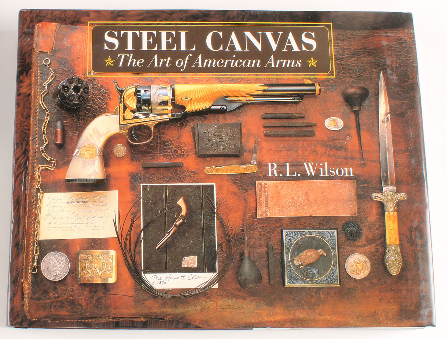 Steel Canvas: The Art of American Arms by R.L. Wilson 1995, 8 1/2'' x 11''. 384 pages, pages clean, binding tight, hardcover and dustjacket excellent, b/w images and colored images. Grade: Excellent ++ - Value: 10 to 40