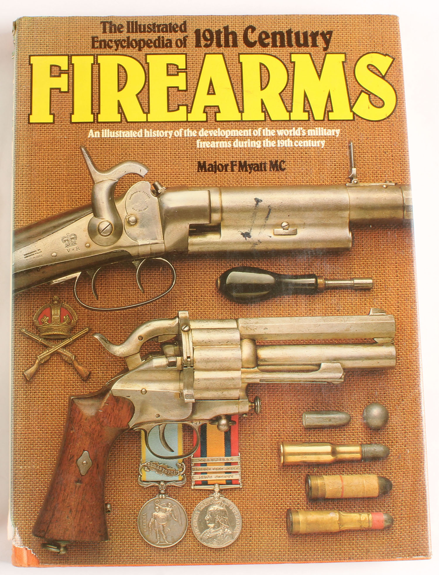 The Illustrated Encyclopedia of 19th Century Firearms: An Illustrated History of the Development of the World's Military Firearms During the 19th Century by Major F. Myatt MC 1979, 216 pages, pages clean, binding tight, hardcover very good, dustjacket has some tears in it, b/w and colored images. Grade: Very Good + - Value: 5 to 20