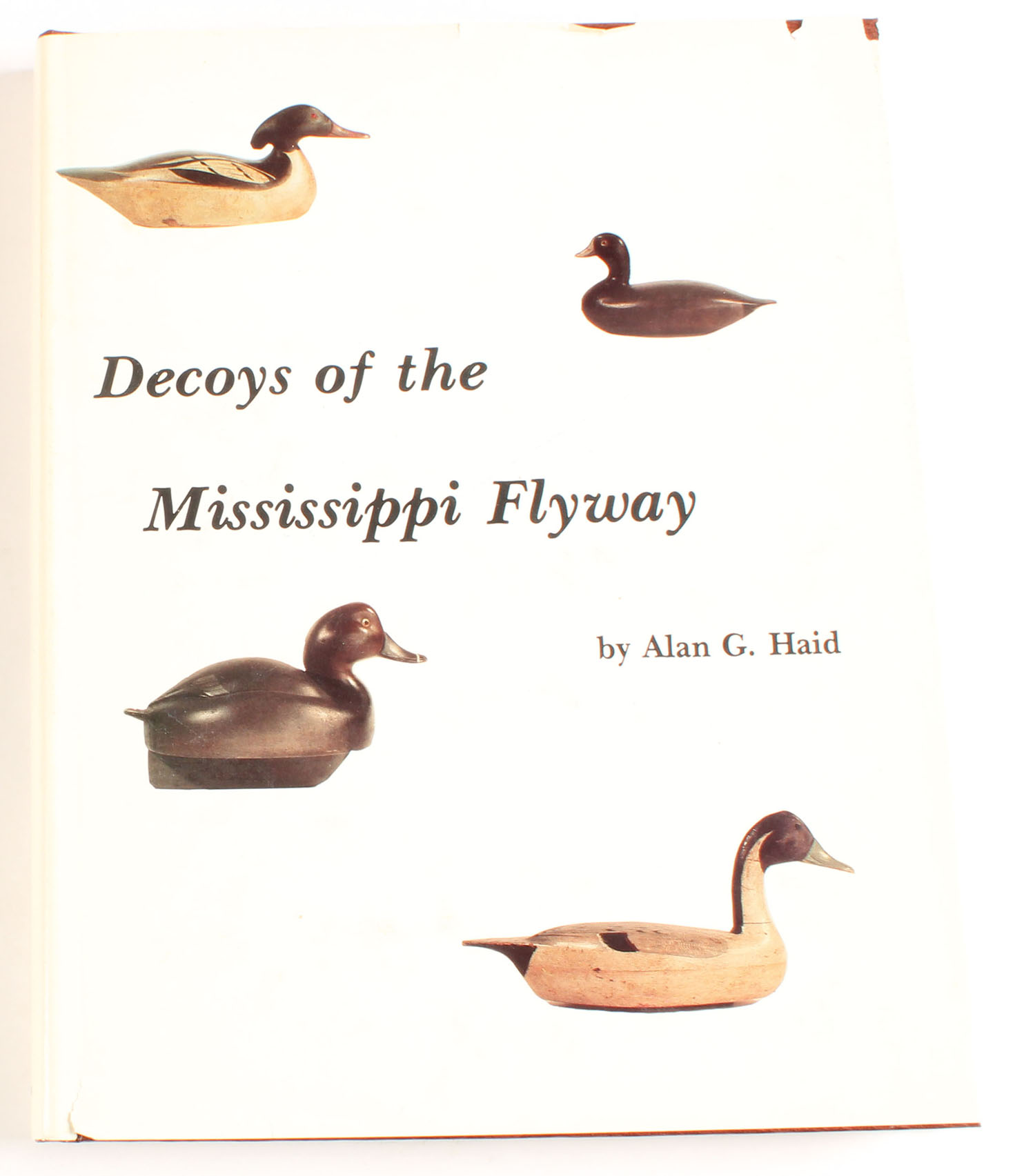 Decoys of the Mississippi Flyway by Alan G. Haid 1981, SIGNED BY AUTHOR, 8 1/2'' x 11''. 271 pages, pages clean, binding tight, hardcover very good, dustjacket has tears on it, colored images. Value: $200 Grade: Very Good + - Value: 20 to 200
