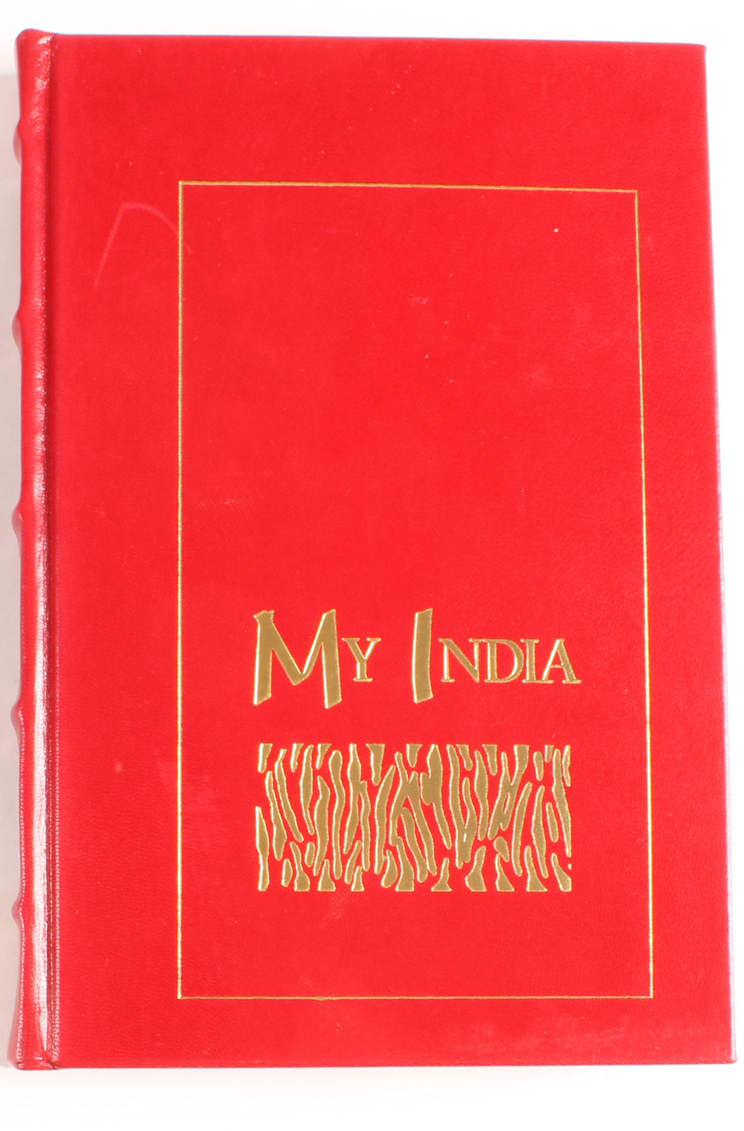 My India by Jim Corbett 1995, 6'' x 9''. 195 pages, number 1113 of 1500, full red bonded leather, spine & upper board titled in gilt, silk marker, pages clean, hardcover mint. Value: $166 Grade: MINT - Value: 10 to 160
