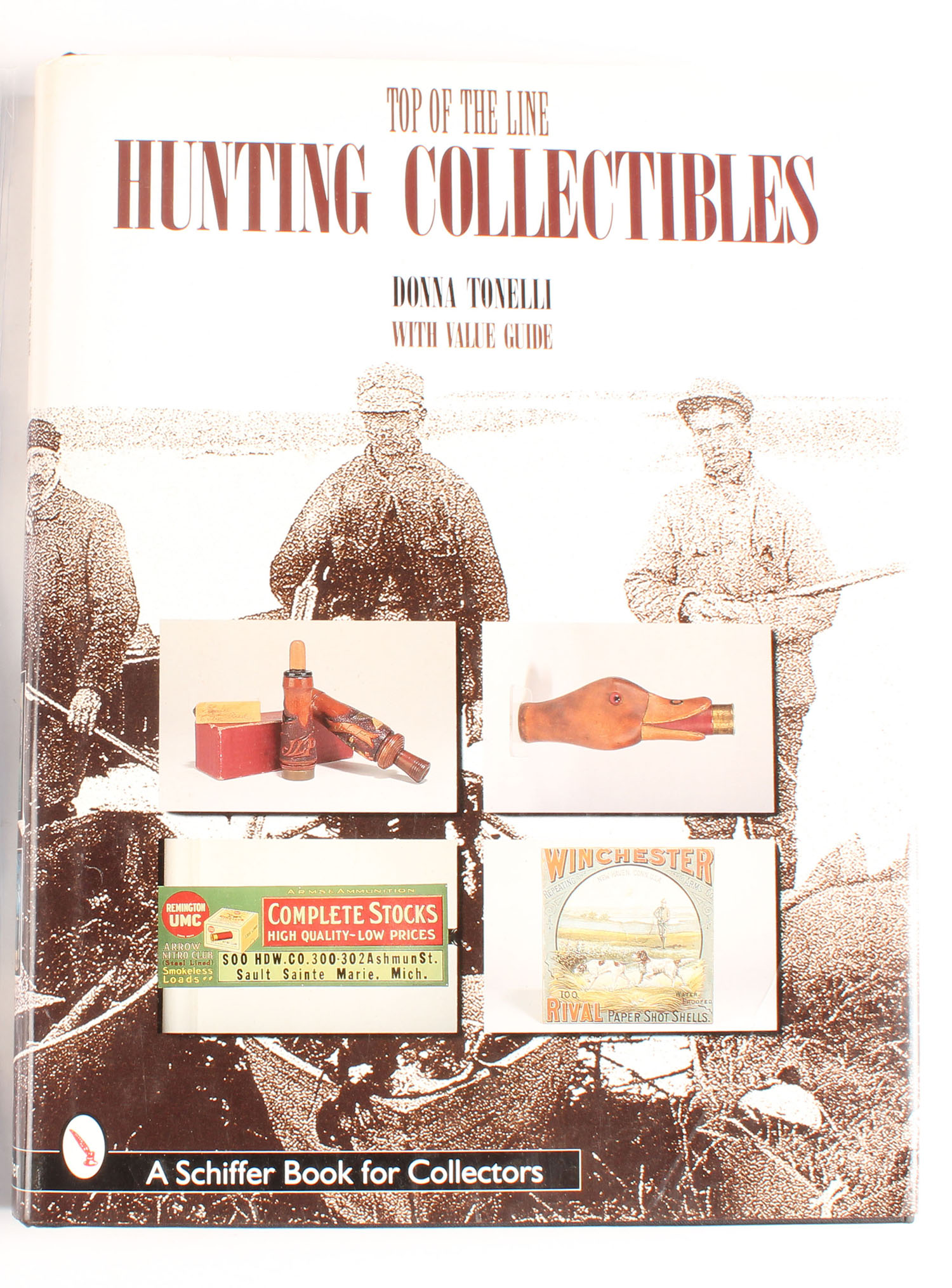 Top of the Line Hunting Collectibles (A Schiffer Book for Collectors) by Donna Tonelli 1998, 9'' x 12''. 278 pages, pages clean, binding tight, hardcover and dustjacket very good, b/w and colored images. Value: $60 Grade: Very Good ++ - Value: 2 to 60