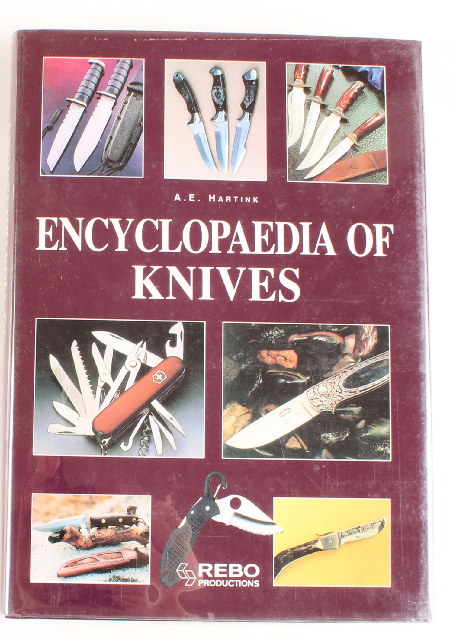Encyclopedia of Knives by A.E. Hartink 1999, 6 1/2'' x 9 1/2''. 352 pages, pages clean, binding tight, hardcover and dustjacket very good, colored images. Value: $100 Grade: Excellent - Value: 10 to 100