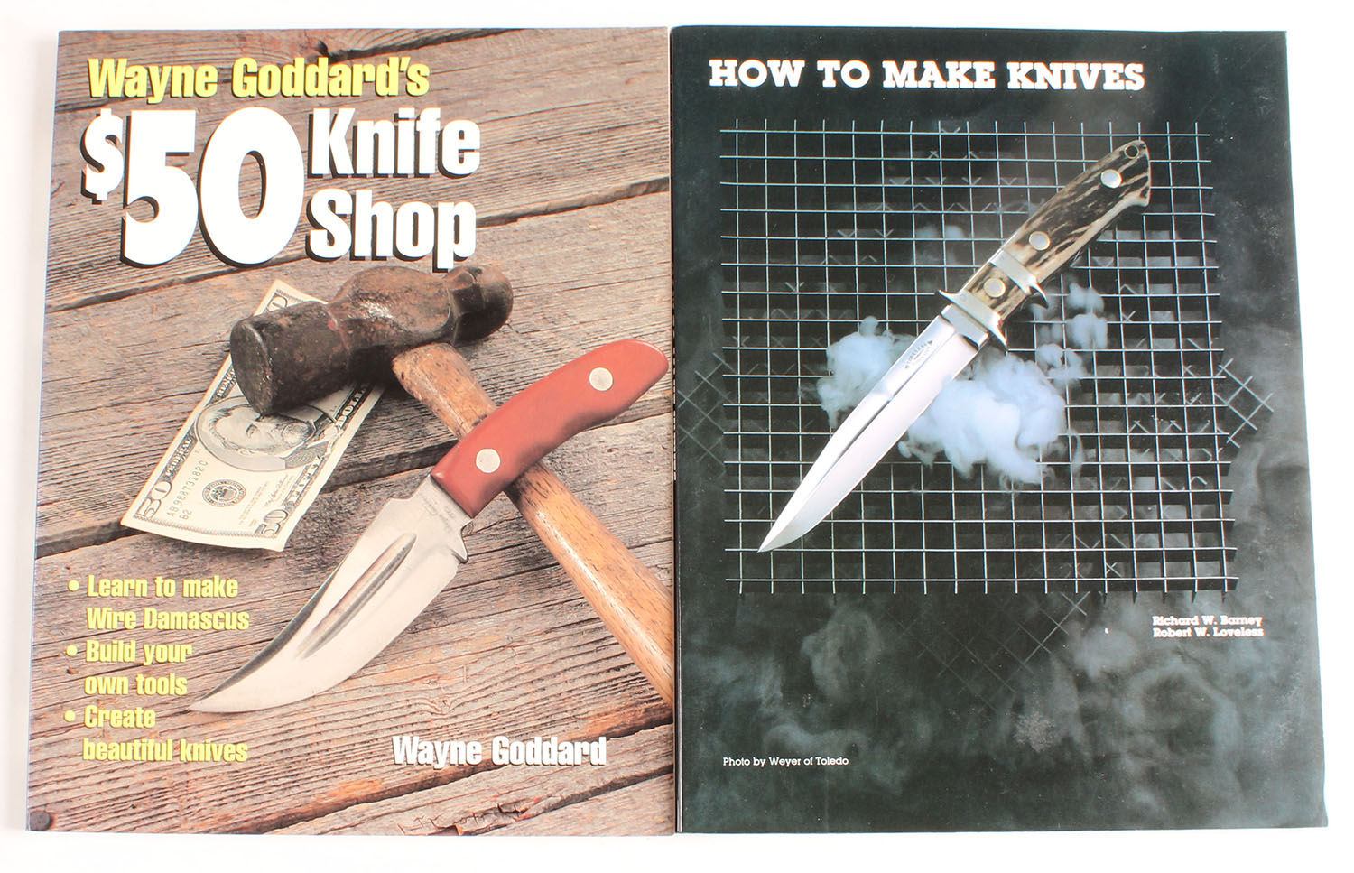 Lot of 2 (1) How to Make Knives by Richard W. Barney 1994 (1) Wayne Goddard's $50 Knife Shop. Both 8 1/2'' x 11''. Softcover very good, pages clean, binding tight. Grade: Very Good ++ - Value: 2 to 100