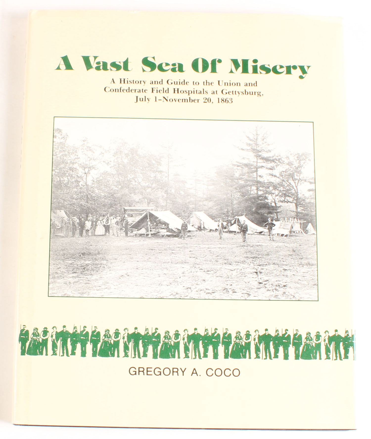 A Vast Sea of Misery: A History and Guide to the Union and Confederate Field Hospitals at Gettysburg, July 1-November 20, 1863 1996 by Gregory A. Coco, 8 1/2'' x 11''. 208 pages, pages clean, binding tight, hardcover and dustjacket very good. Value: $100 Grade: Very Good ++ - Value: 5 to 100