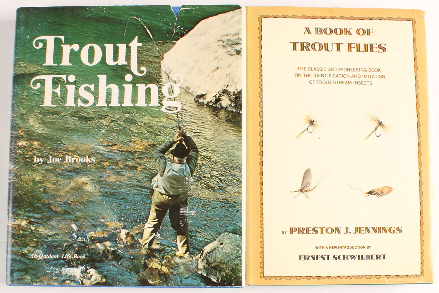 Lot of 2 (1) A Book of Trout Flies/The Classic and Pioneering Book on the Identification and Imitation of Trout-Stream Insects by Preston J. Jennings 1972, 190 pages. (1) Trout Fishing by Joe Brooks. Both hardcover and dustjackets very good, pages clean, bindings tight. Grade: Very Good ++ - Value: 2 to 100