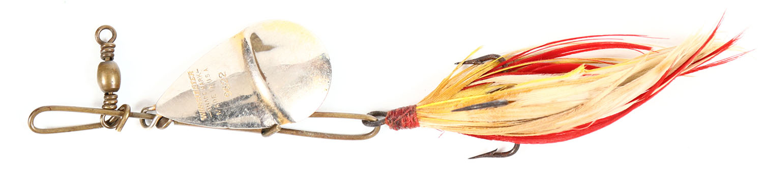 Winchester Gold Bowl Trolling spoon No 9622, Nickel & gold plated blade with feather teaser, 1 hook. Grade: Excellent - Value: 30 to 100