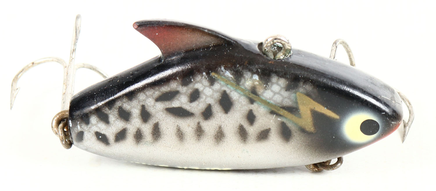 Heddon Super Sonic, 2 hook lure, black & silver spots, PE. Grade: MINT - Value: 4 to 30