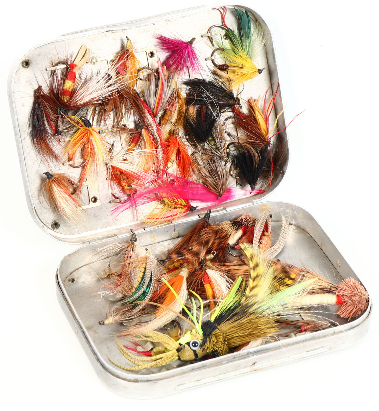 | Metal fly wallet with many flies inside. Grade: Excellent - V...