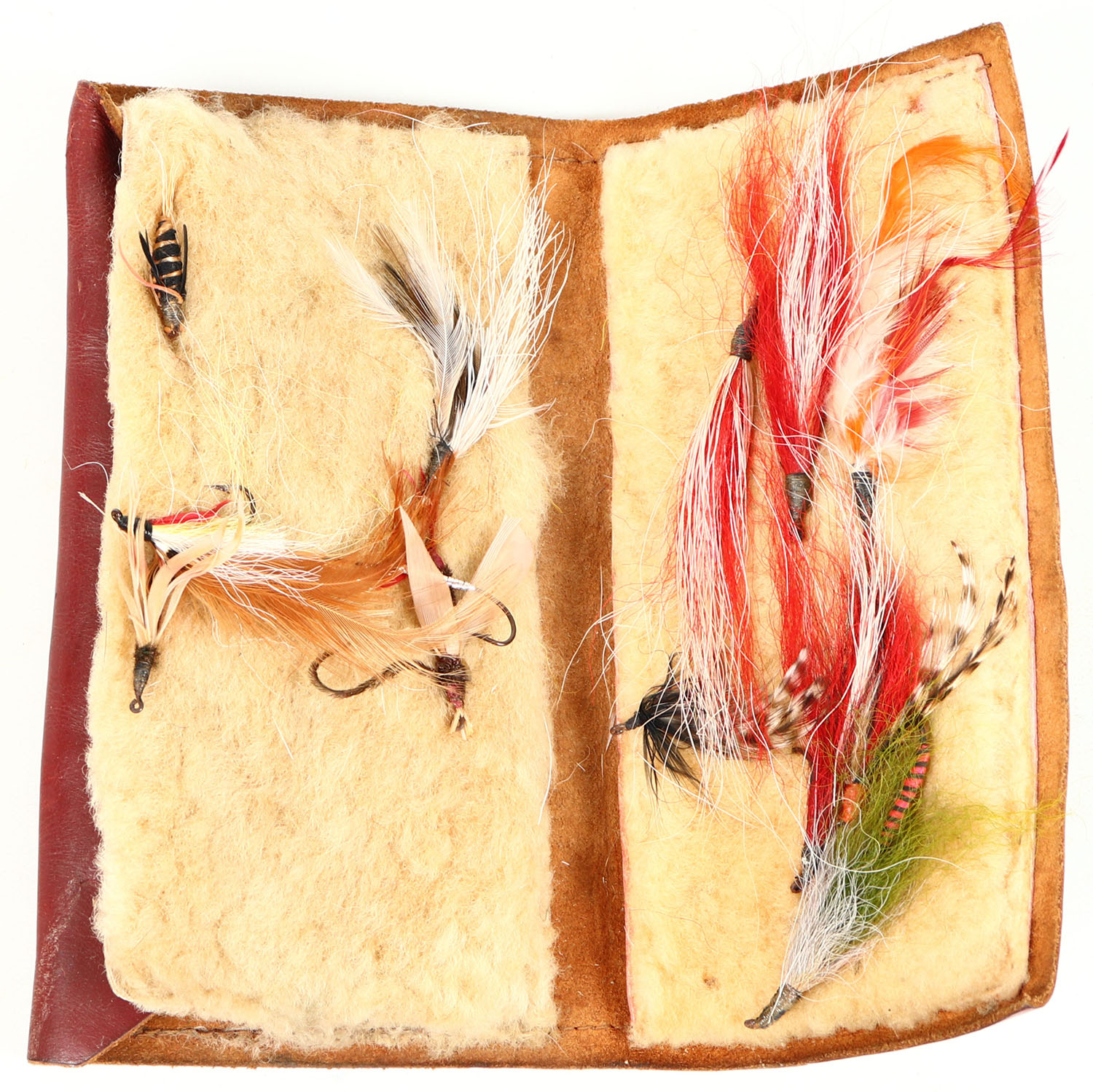 | Leather fly wallet with many flies inside. Grade: Excellent - ...