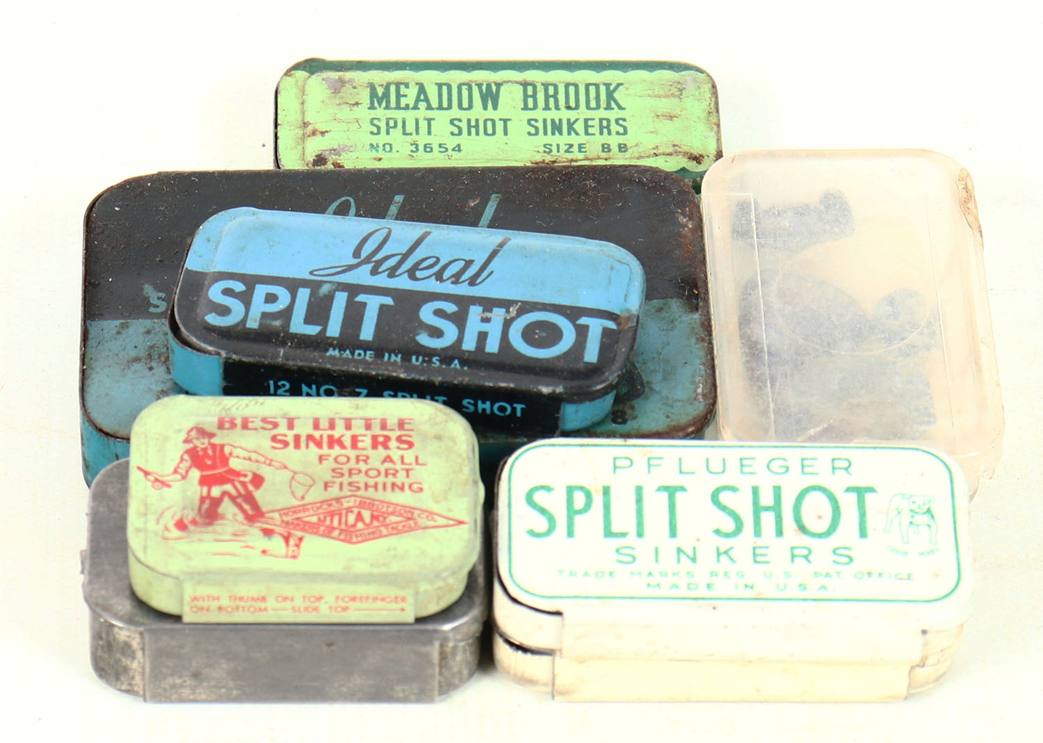 Lot of fishing sinker tin boxes. Grade: Excellent - Value: 10 to 40