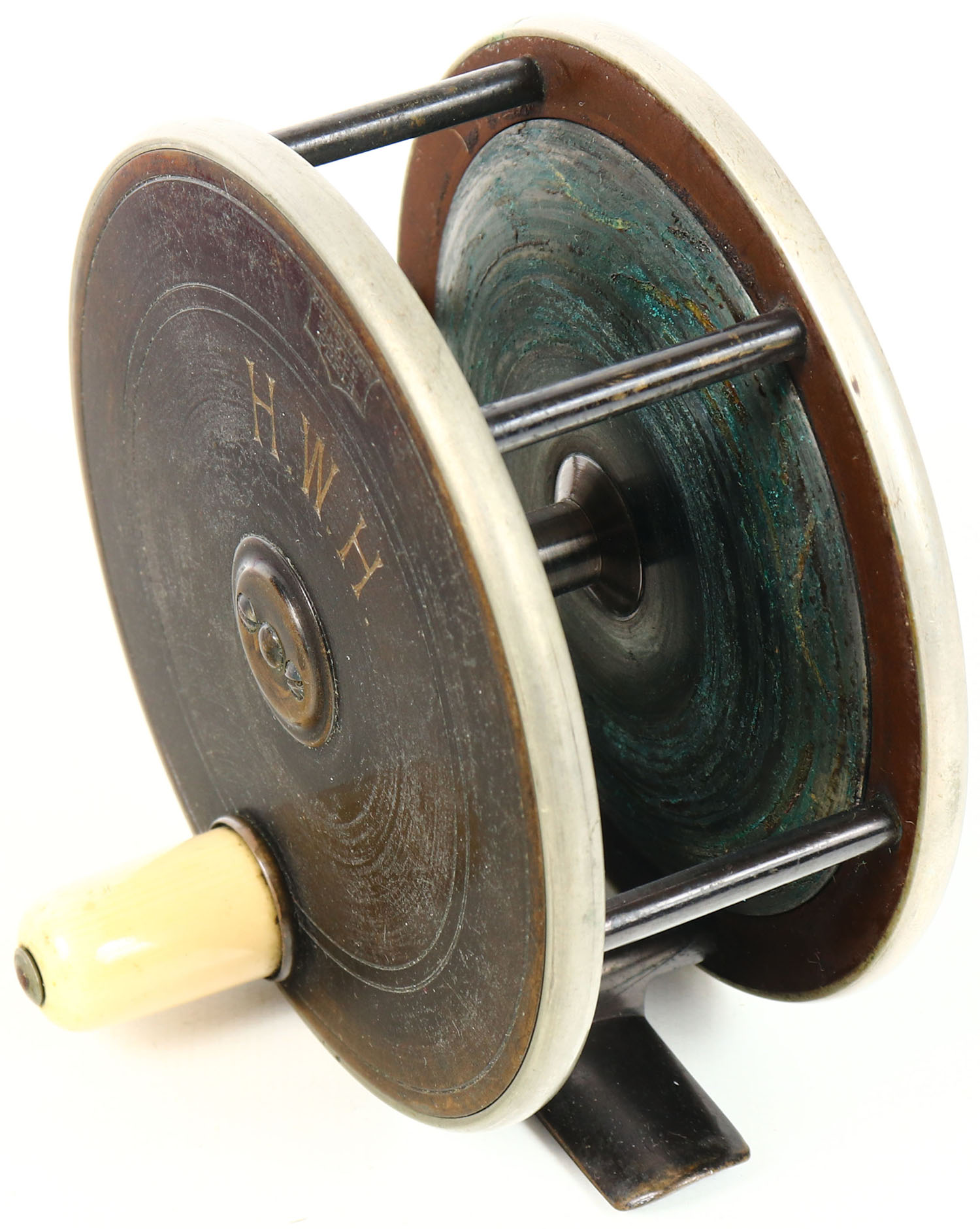 Early P.D. Malloch Perth fly reel, circa 1890's, large reel 4 1/4'' dia., works well with strong click, has H.W.H. initial on one side, Hard to find. Grade: Excellent - Value: 30 to 200