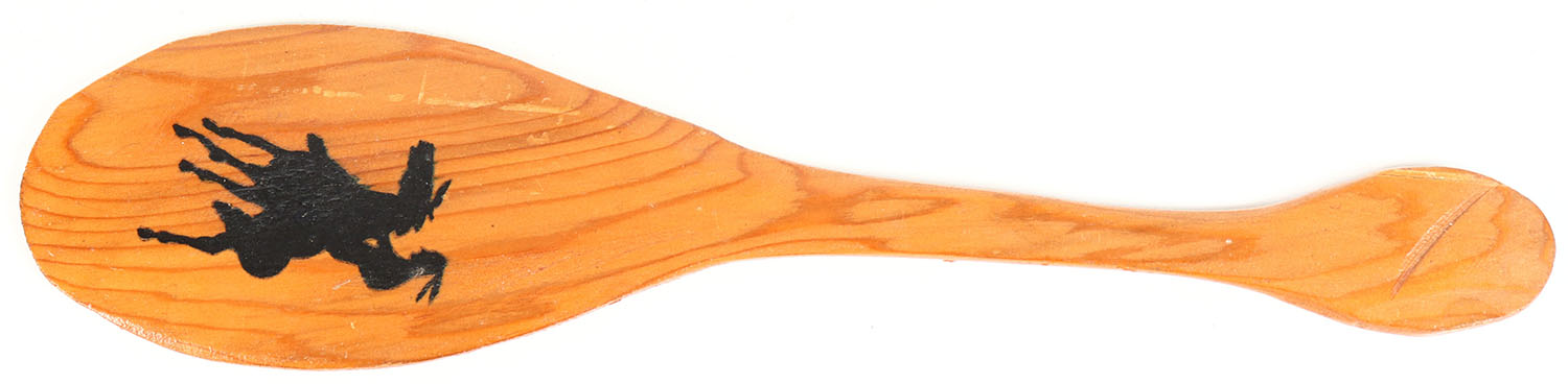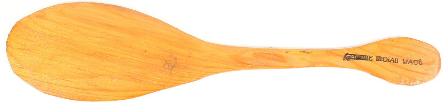 Small paddle with image of Indian riding a horse, marked ''GENUINE INDIAN MADE'', 11'' long. Grade: Excellent - Value: 2 to 30