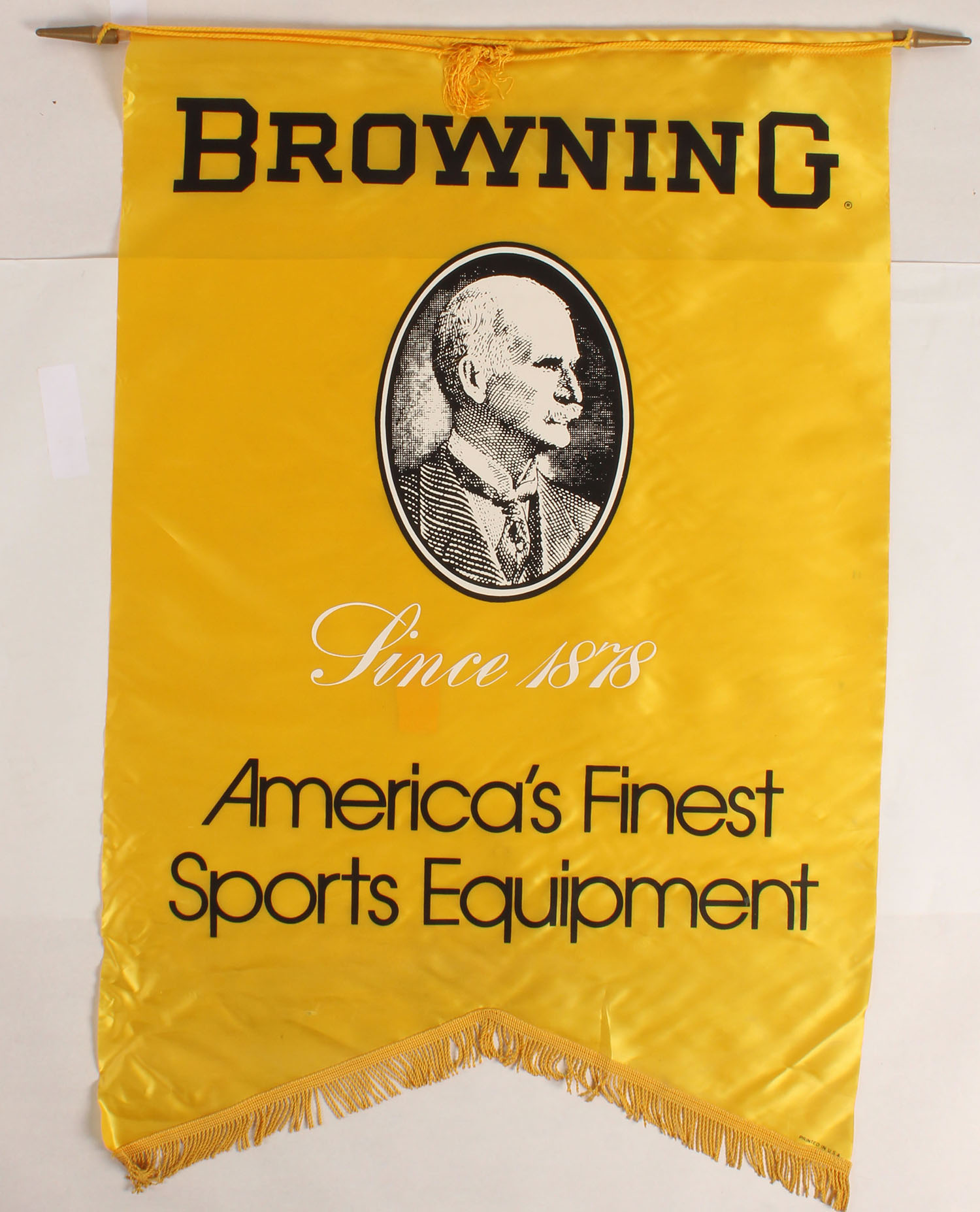 Browning banner, ''BROWNING SINCE 1878'', gold, white & black, all complete, 27 1/2'' x 41''. Grade: Excellent ++ - Value: 30 to 100