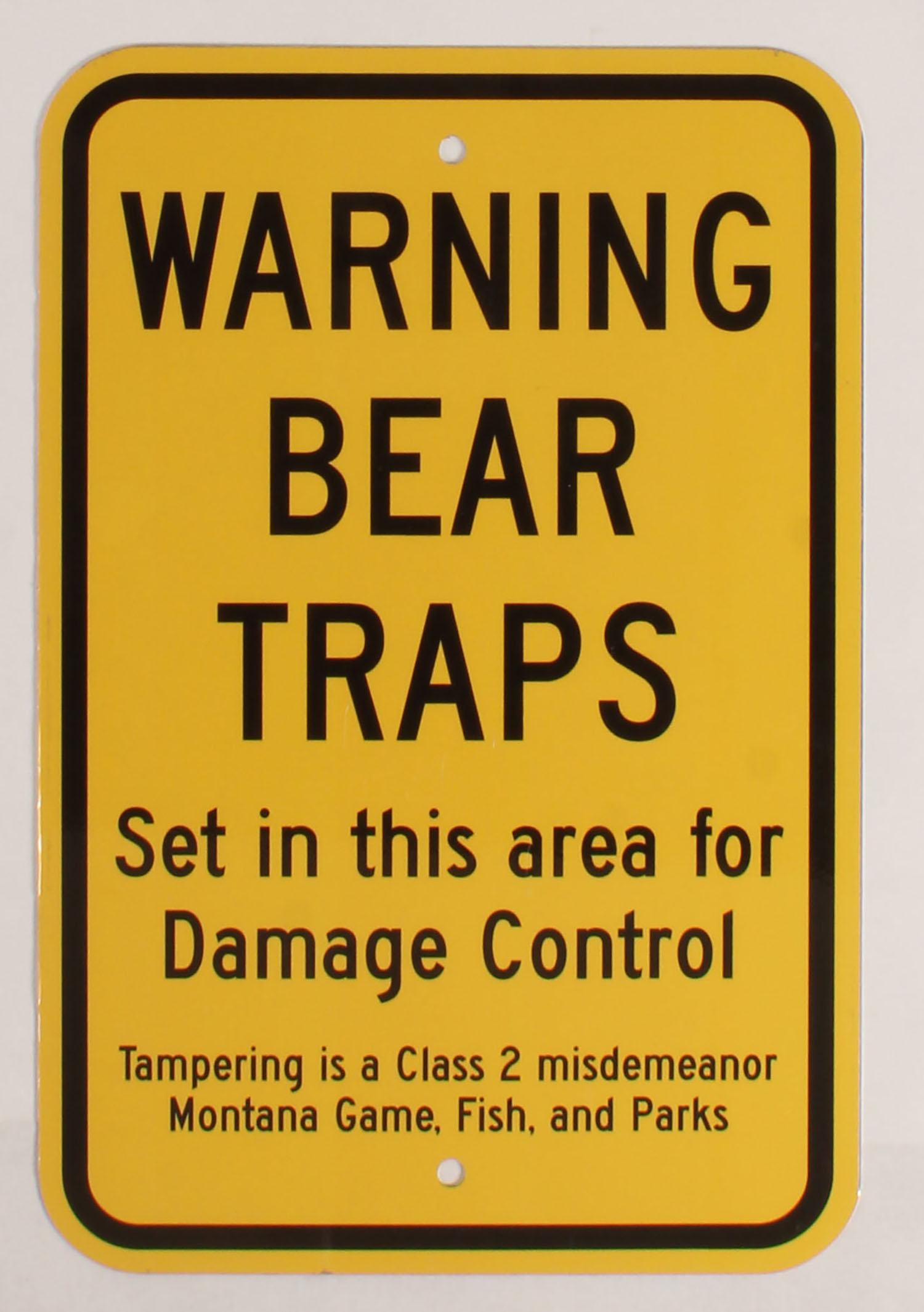 Warning BEAR TRAPS metal sign, 12'' x 18''. Grade: MINT - Value: 10 to 60