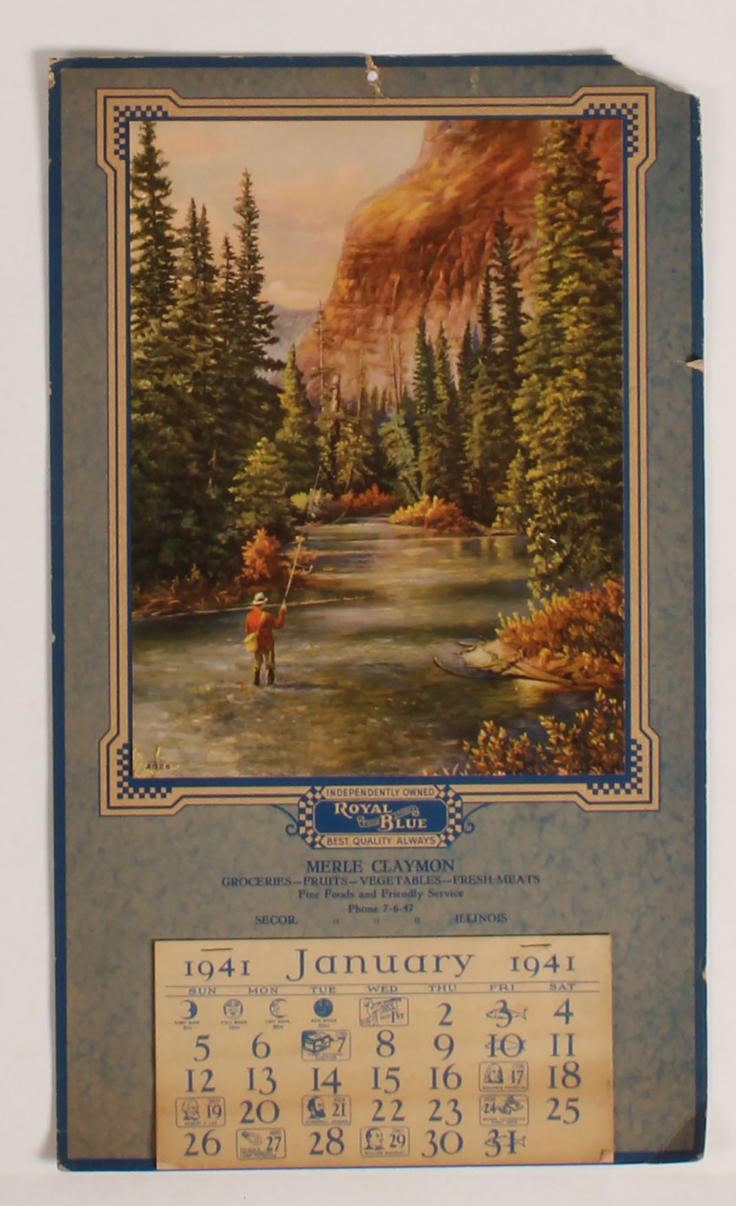 1941 Fishing calendar, full pad of pages, 10'' x 17''. Grade: Very Good ++ - Value: 2 to 60