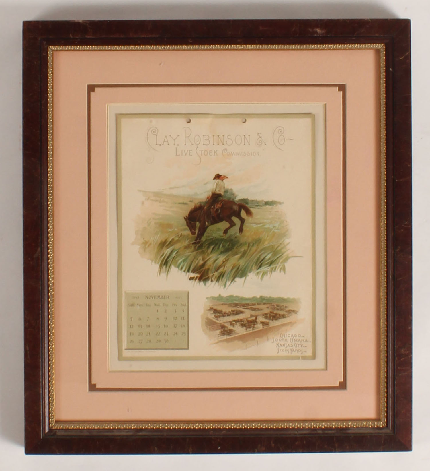 1893 Clay Robinson & Co. Live Stock Commission calendar, Nov page, 8'' x 10'', framed. Grade: Excellent - Value: 10 to 100