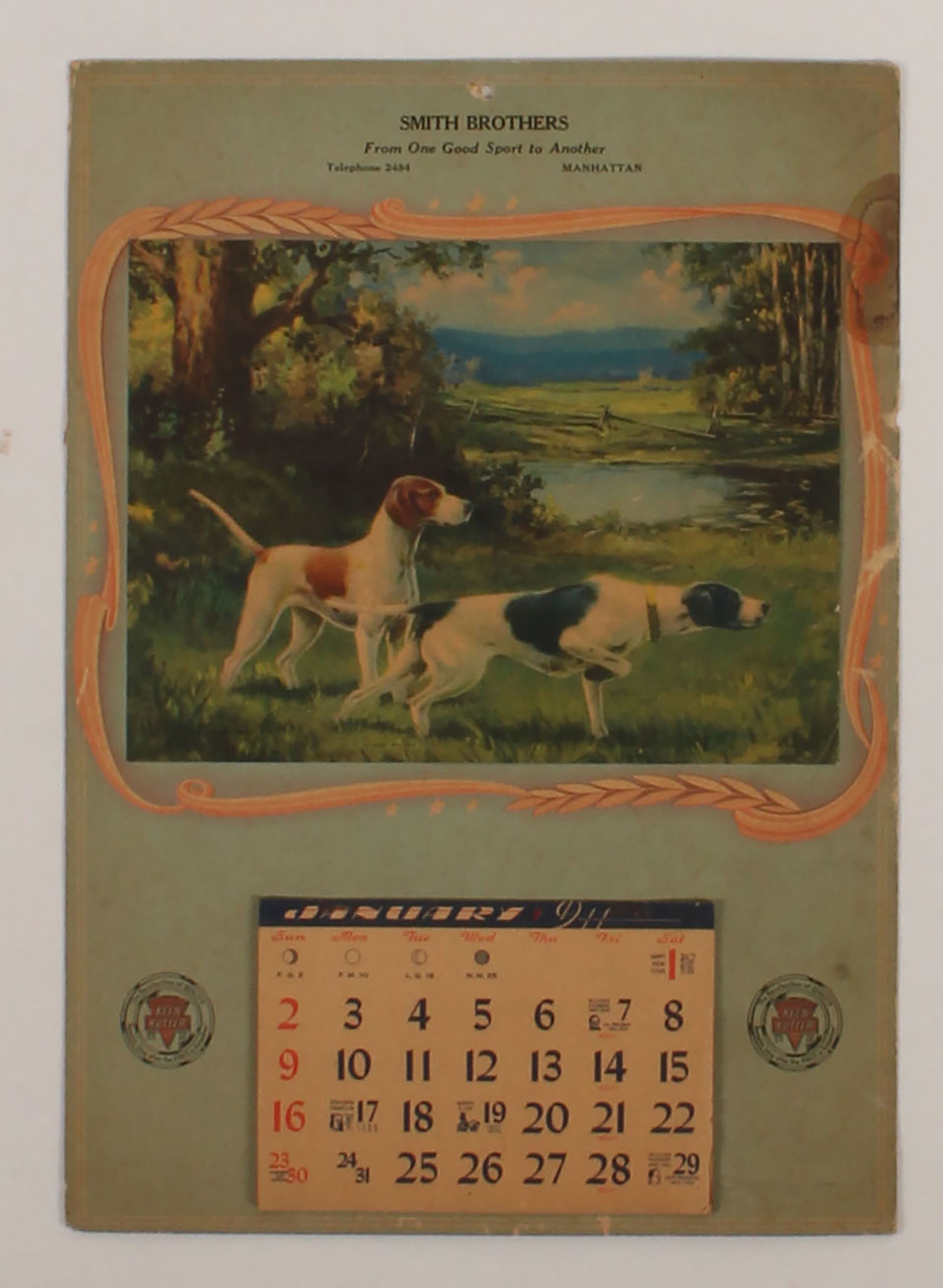 1944 Keen Kutter calendar, pictures dogs on point with pond in background, full pad of pages. Grade: Very Good - Value: 6 to 50