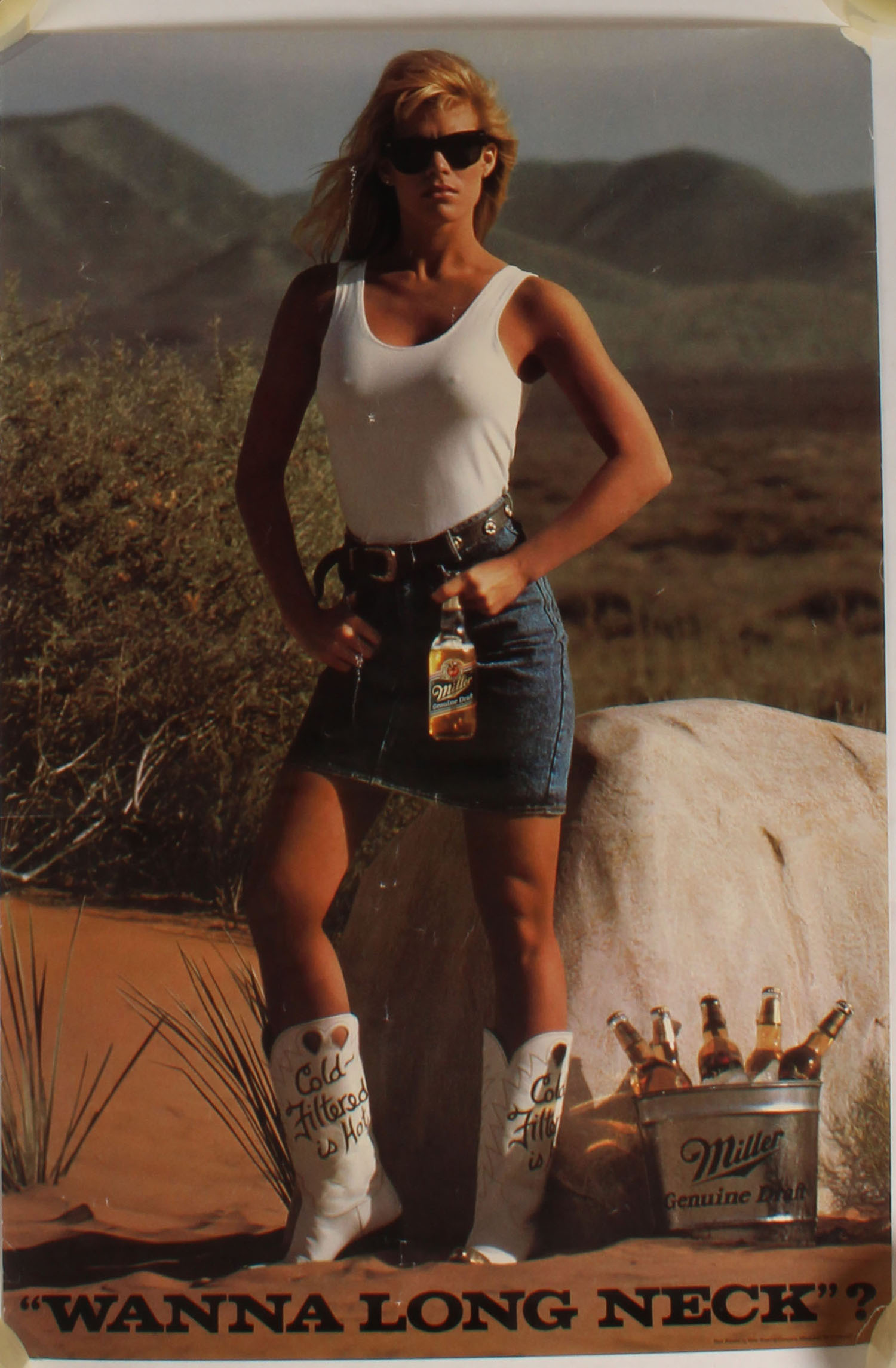 Miller Lite Poster, pictures lady holding a beer in the desert, 20'' x 30''. Grade: Very Good ++ - Value: 10 to 40