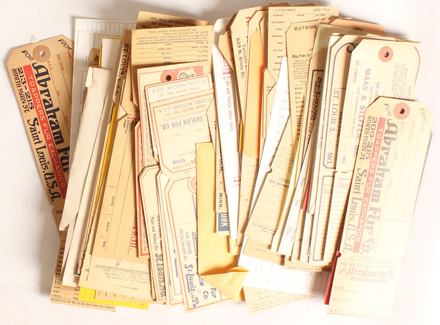 Large lot of fur tags. Grade: Excellent - Value: 20 to 200