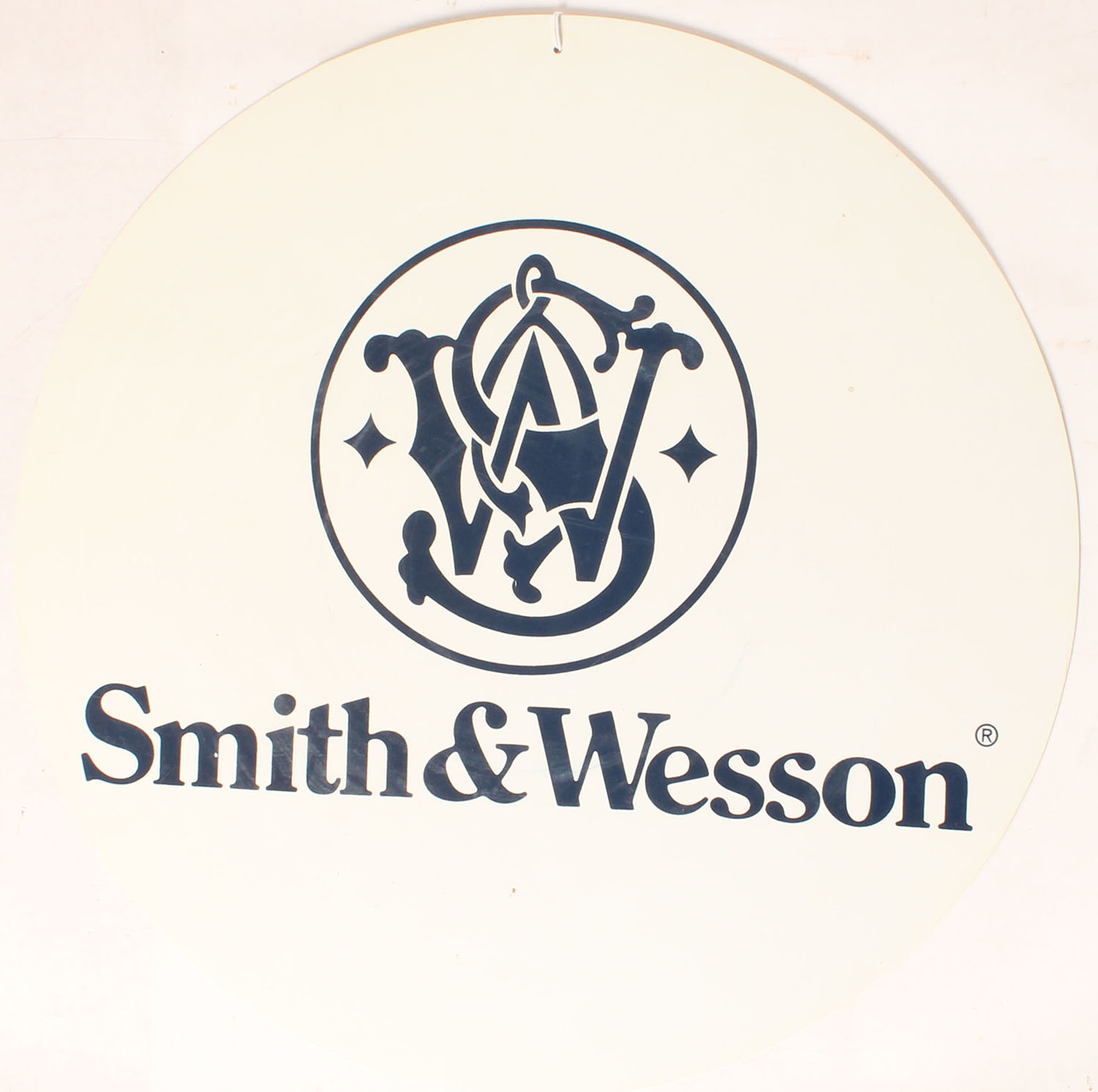 Smith & Wesson two sided sign, flexible plastic, 16'' dia. Grade: Excellent - Value: 10 to 50