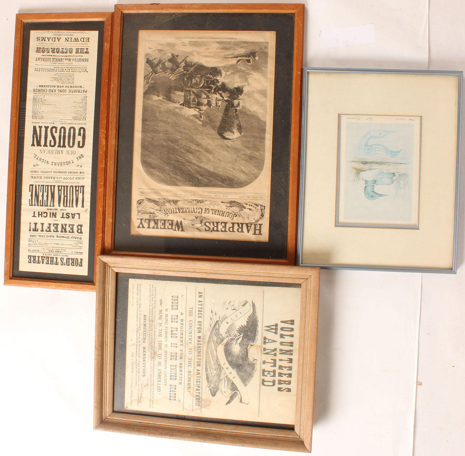 Large lot of framed prints & paperwork. Grade: Excellent - Value: 6 to 50