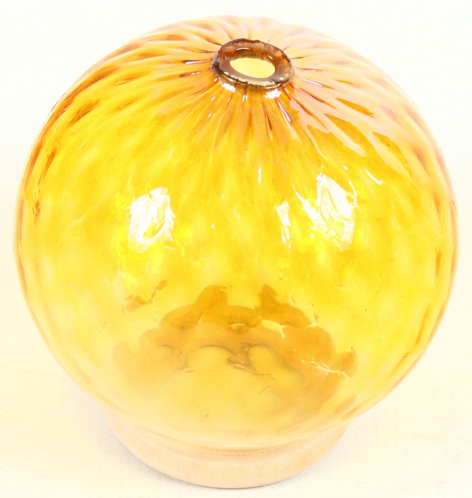 Rare Amber Glass Target Ball, only smaller than the one lot before this one, unmarked, fish net design, low neck, very collectible. Grade: Excellent - Value: 200 to 500