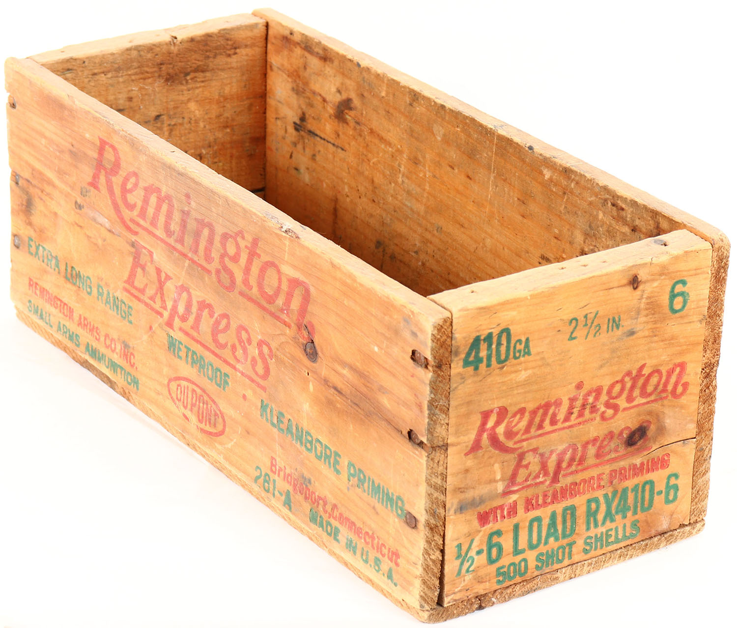 Remington Kleanbore Express, 410 Ga., nail construction, red, & green print is solid and crate is solid. Grade: Very Good ++ - Value: 20 to 80