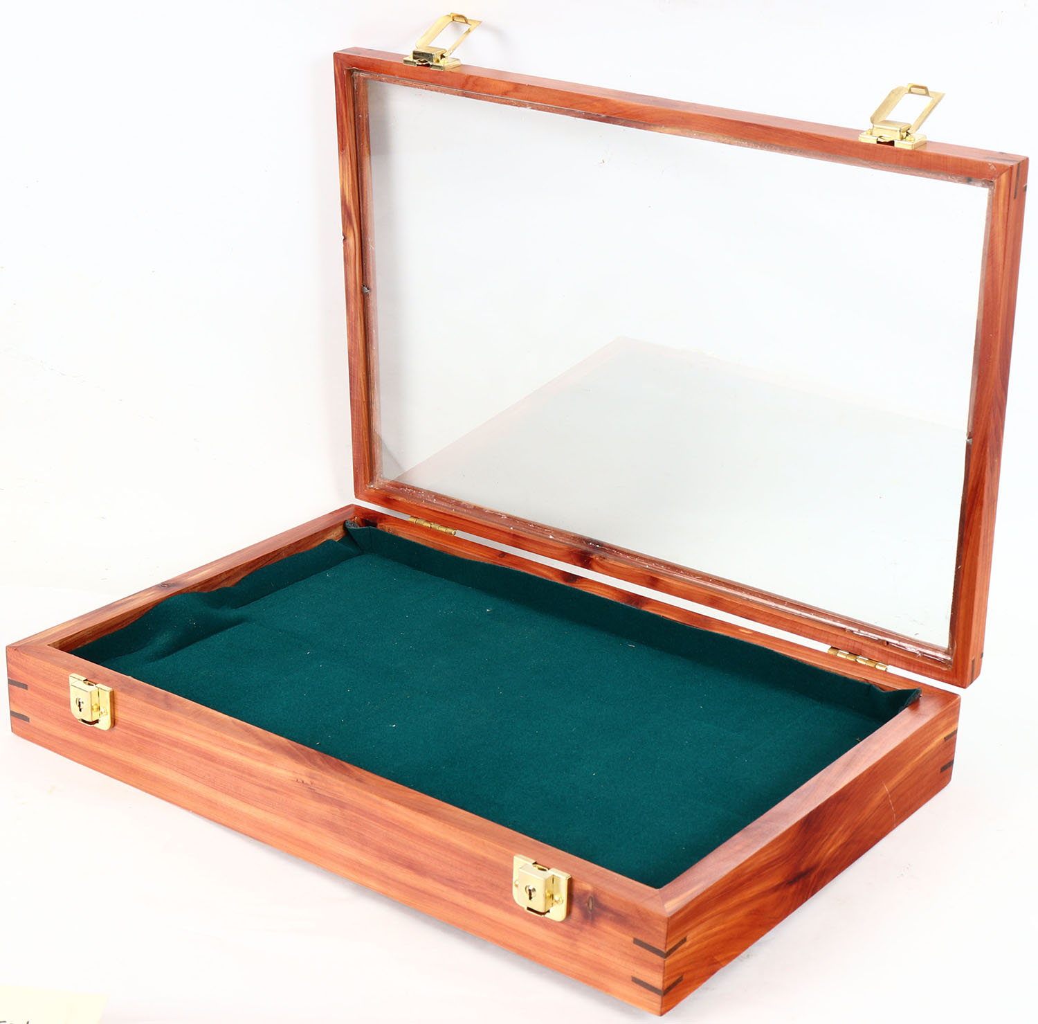 Wood display case, felt liner, 18'' x 12'' x 3 1/2''. Grad...