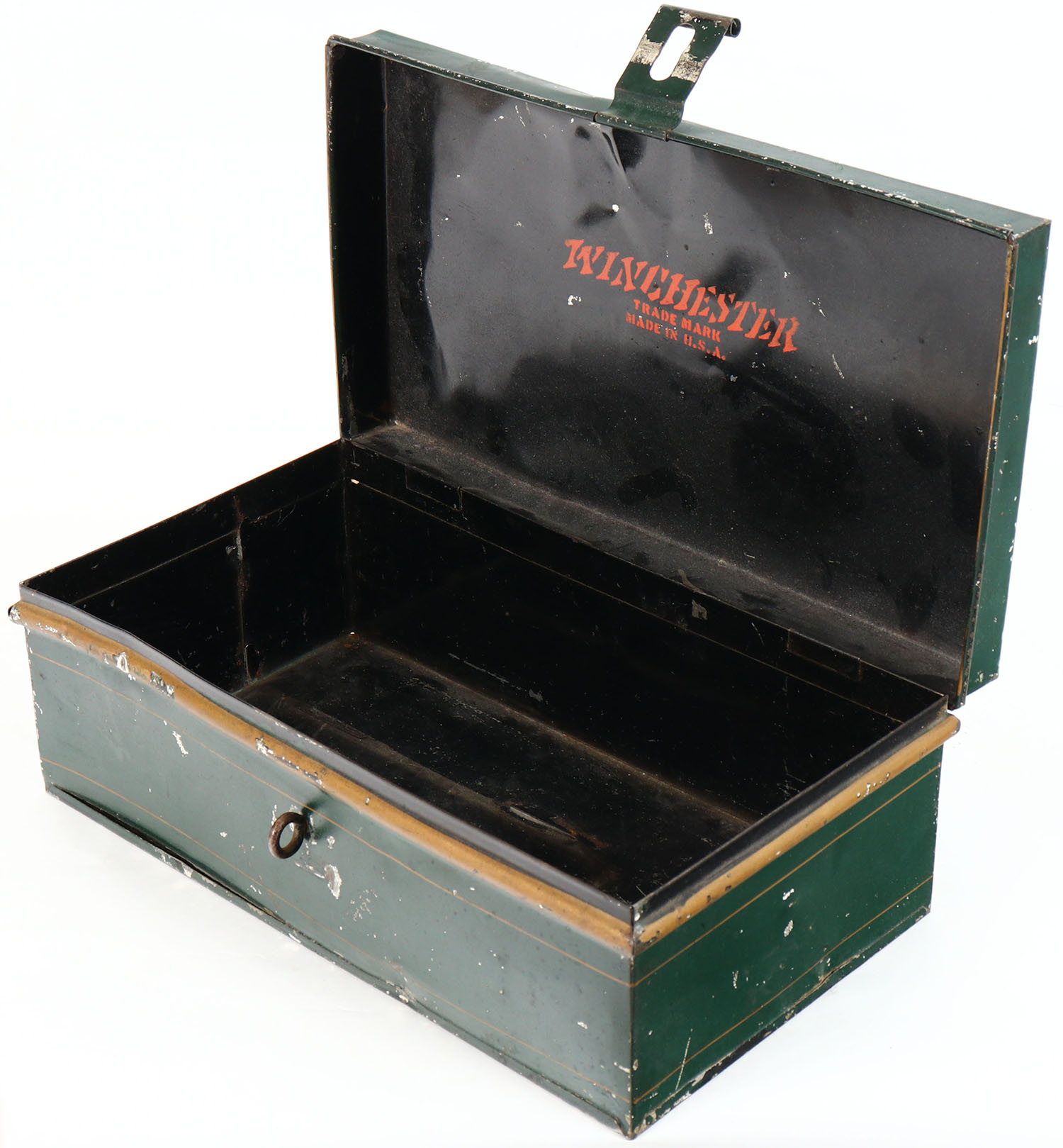 RARE! Winchester Tackle box, has knicks to paint, but still solid, 11'' x 6'' x 4''. Grade: Very Good ++ - Value: 100 to 300