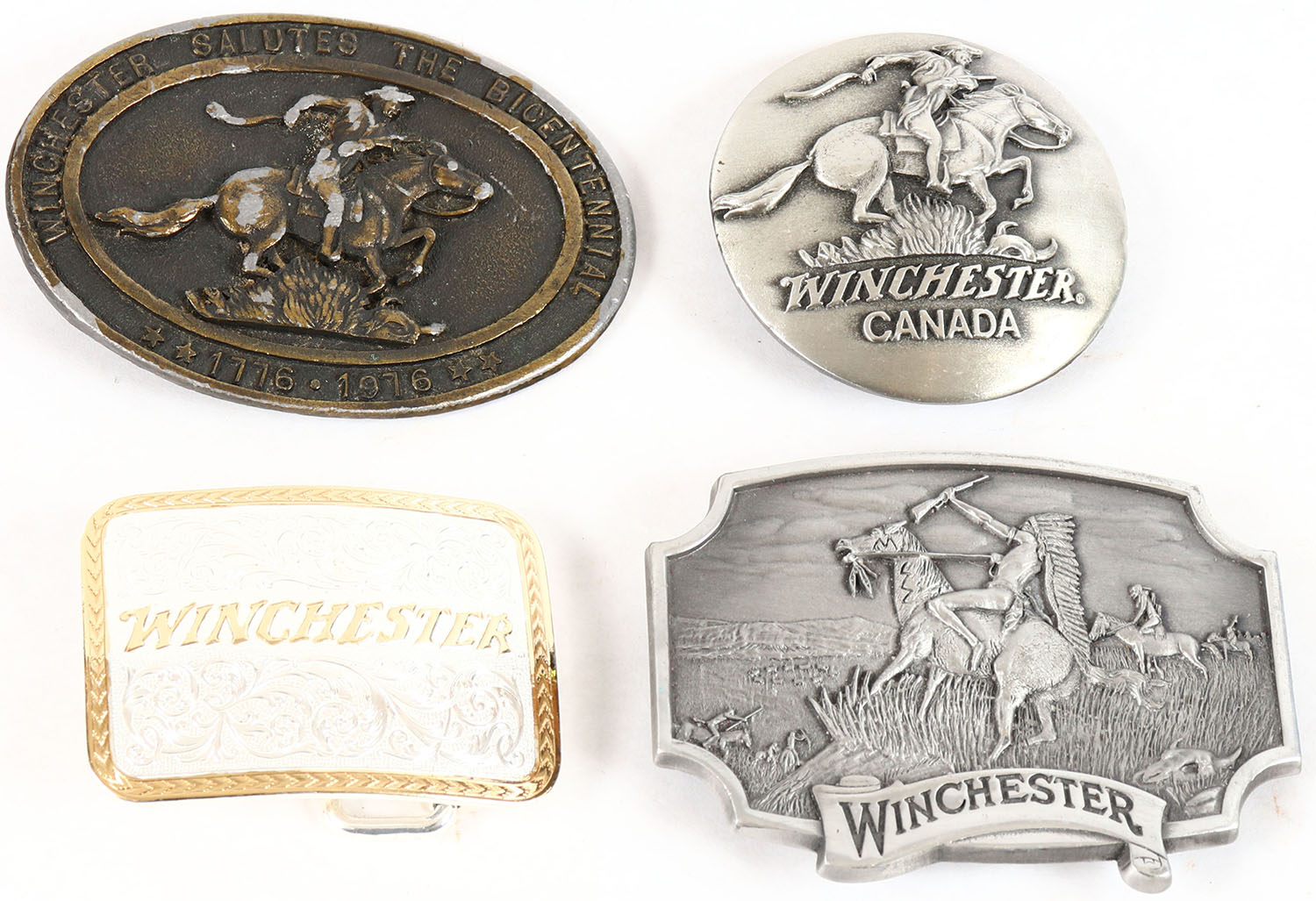 Lot of 4 Winchester Belt Buckles. Grade: Excellent ++ - Value: 10 to 40