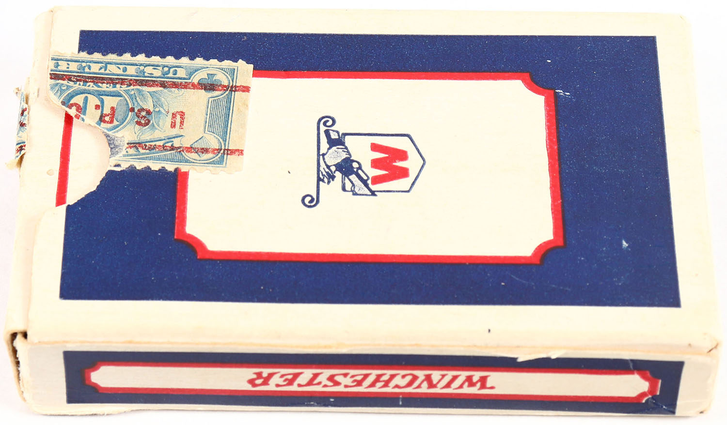 RARE! EARLY deck of Winchester cards, FULL DECK, beautiful image on the back of every card, some soiling to cards but still solid, box has slight tear to top seams but still nice, great color! Grade: Excellent - Value: 50 to 200