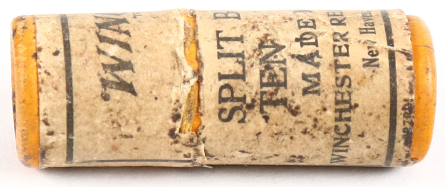 RARE! Winchester Split buck shot, FULL, No. 9135, tube and label have age soiling. Grade: Very Good ++ - Value: 40 to 100