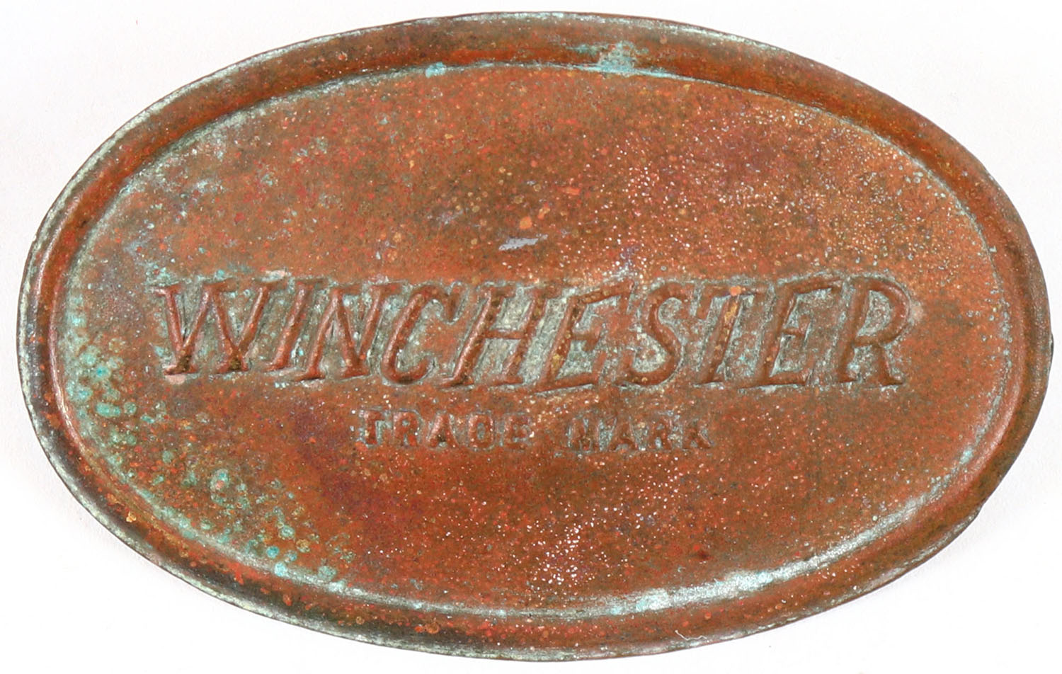Winchester brass plaque, has age soiling. Grade: Excellent - Value: 10 to 50