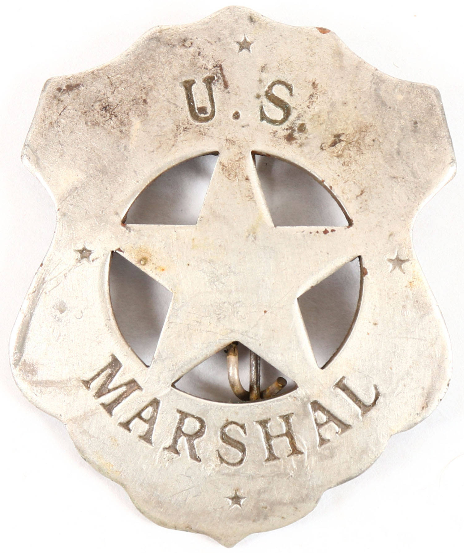 US Marshall badge with the four small stars on border dated 1881. Grade: Very Good ++ - Value: 100 to 500