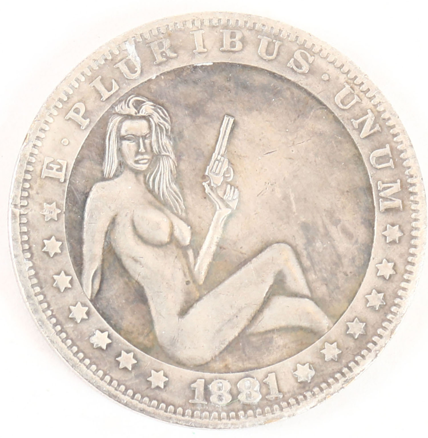 RARE! 1881 nude silver dollar coin with eagle on back. Grade: Excellent - Value: 100 to 400