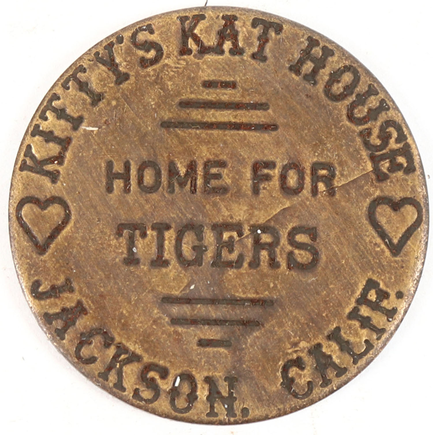 Double sided Brothel Token. ''Kittys Kat House''. Grade: Excellent - Value: 10 to 40