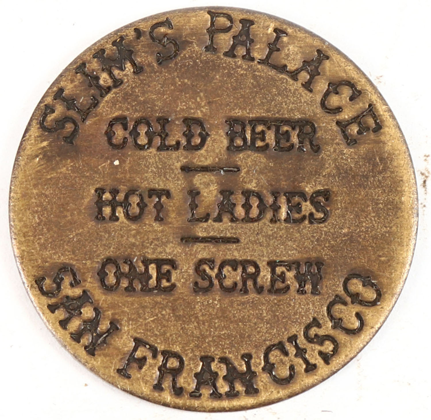 Double sided Brothel Token. ''Slims Palace''. Grade: Excellent - Value: 10 to 40