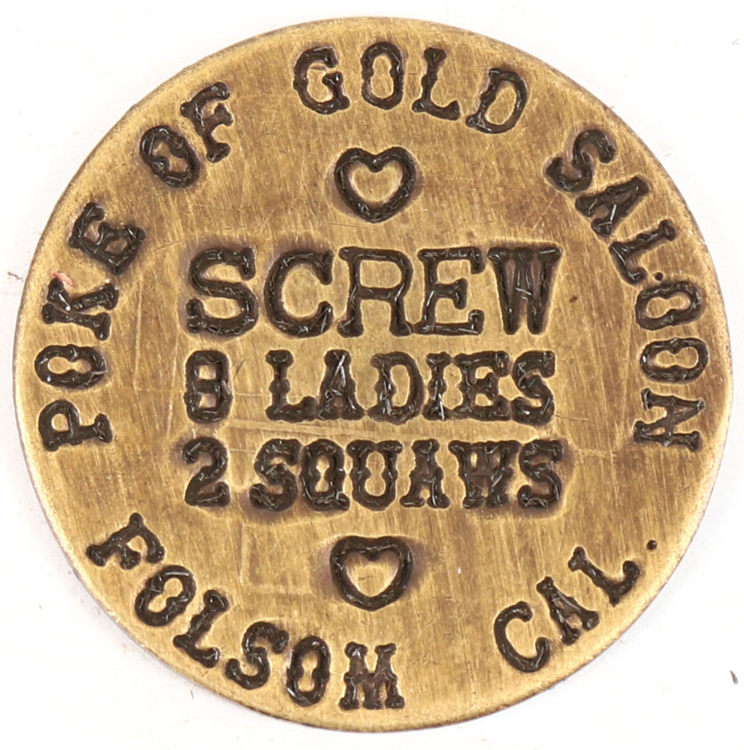 Double sided Brothel Token. ''Poke of Gold Saloon''. Grade: Excellent - Value: 10 to 40