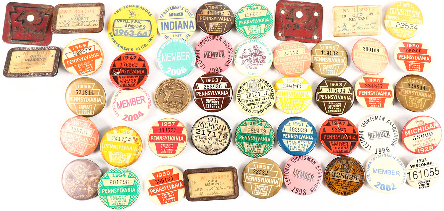 Large lot of hunting and fishing license. Grade: Very Good ++ - Value: 20 to 100