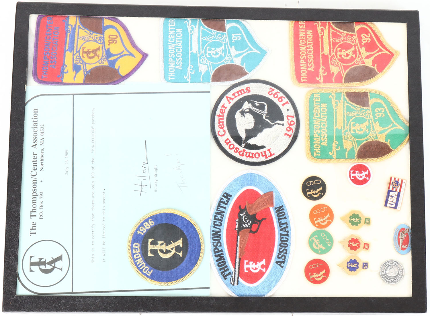 Lot of Thompson Center Association patches & pins. Grade: Excellent ++ - Value: 2 to 20